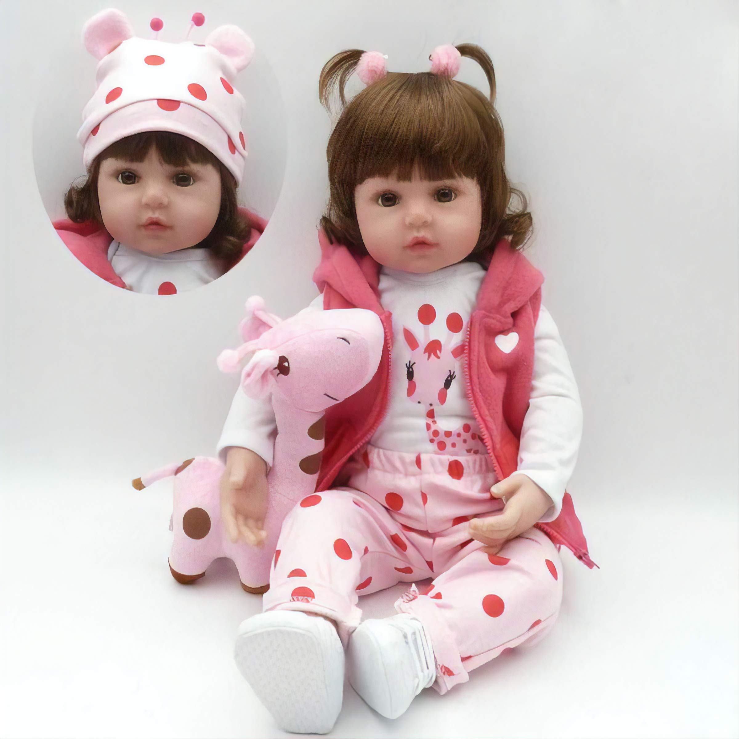 Boneca Bebe Reborn Roupa Girafa em Silicone e algodão 48cm