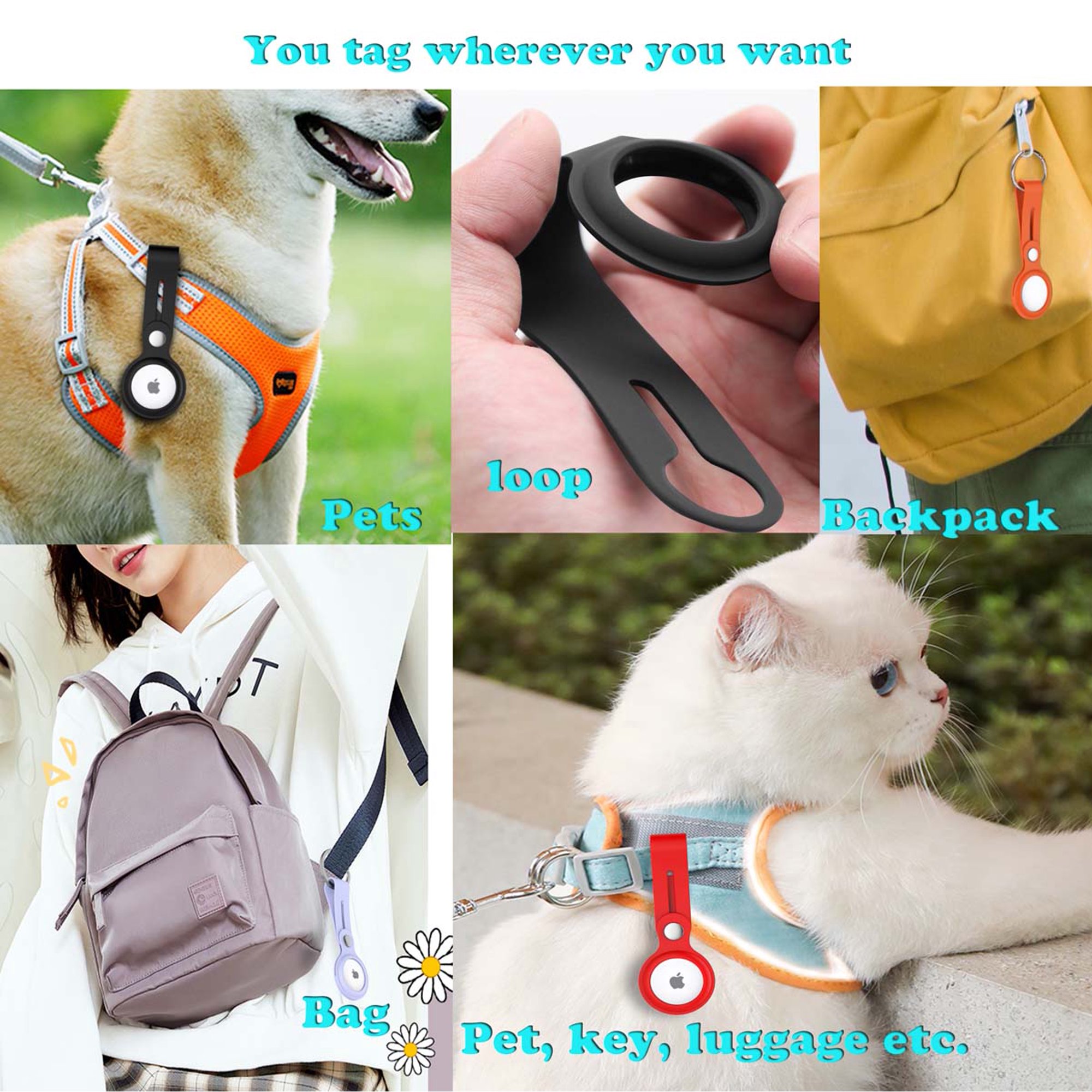 Multifunções: pode ser amarrado com chaveiro, bolsa, coleira para animais de estimação, carro, bicicleta, malas e diversos outros produtos não citados.