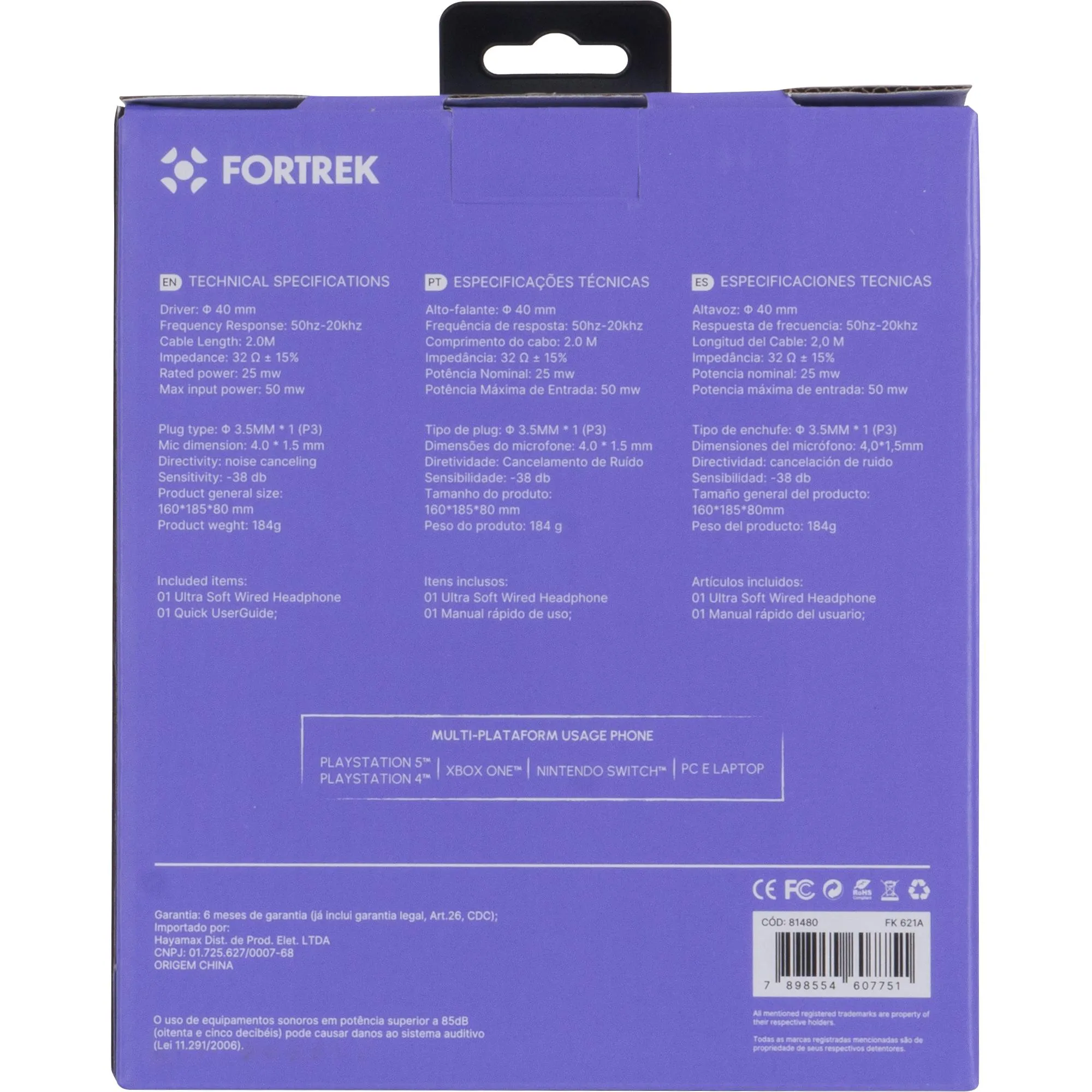 Fone de Ouvido Fortrek FK 621A Com Microfone – Preto
